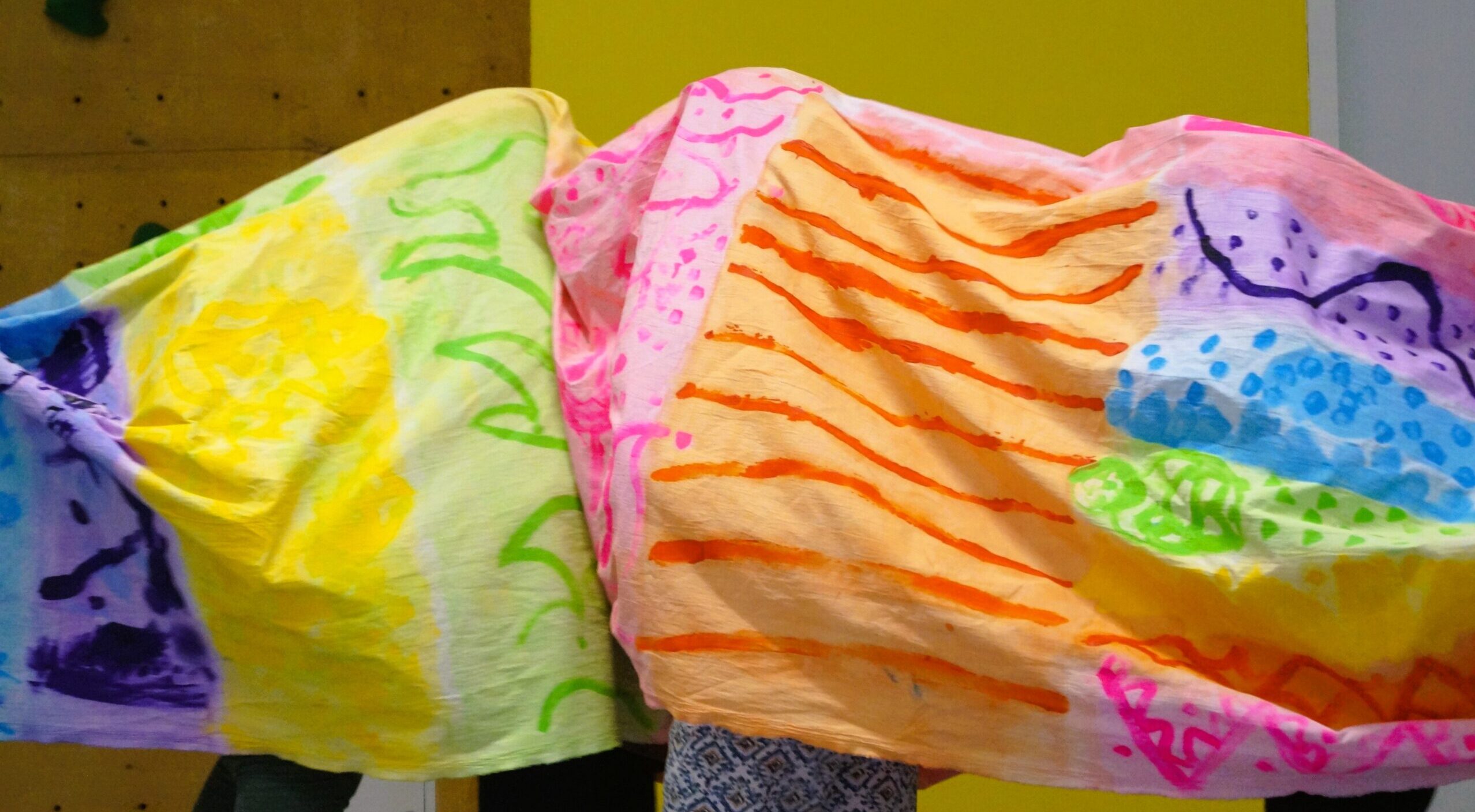 In dieser einwöchigen Projektwoche tauchten die Kinder in die Geschichten, Klänge und Bilderwelten Ozeaniens ein – aus der Perspektive der First Nations. Im Mittelpunkt standen die Regenbogenschlange (Rainbow Serpent) und das Jukurrpa (Traumzeit-Wissen), die als Ausgangspunkt für kreative Kunst- und Musikübungen dienten. Gemeinsam gestalteten die Kinder Masken, Collagen und Figuren, entdeckten rhythmische Strukturen, sangen Melodien und lernten traditionelle Kunstformen kennen. Auf spielerische Weise behandelten wir auch Themen wie Kolonialismus, Weltanschauung und gegenseitigen Respekt und zogen Verbindungen zu den eigenen Kulturtraditionen der Kinder. Am Ende präsentierten die Kinder ihre Werke – ein kollektives Regenbogenschlagen-Kostüm und eine gemeinsame Komposition – in einer kleinen Abschlussfeier.